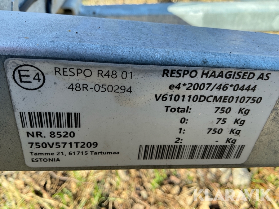 Båttrailer Respo R48 750 kg