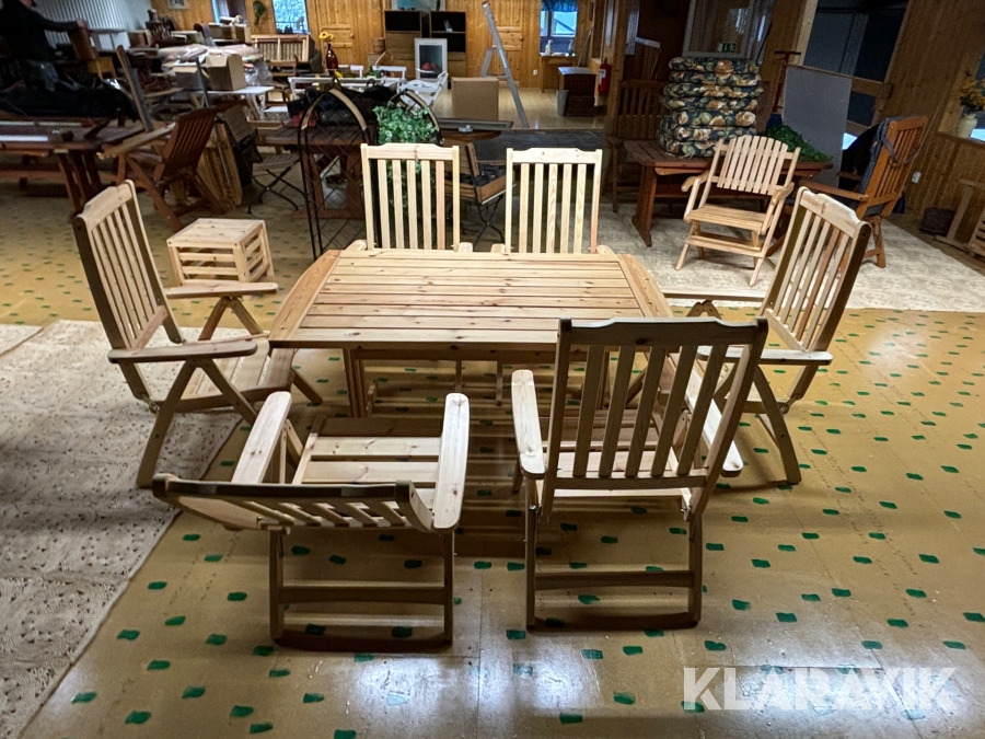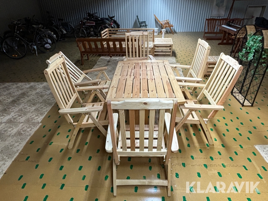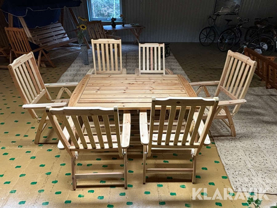 Utemöblemang i furu 6st stolar + 1st bord