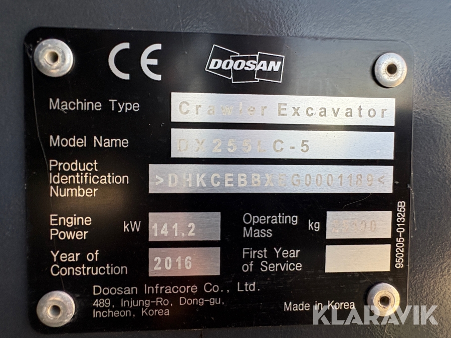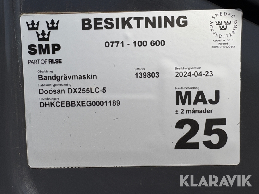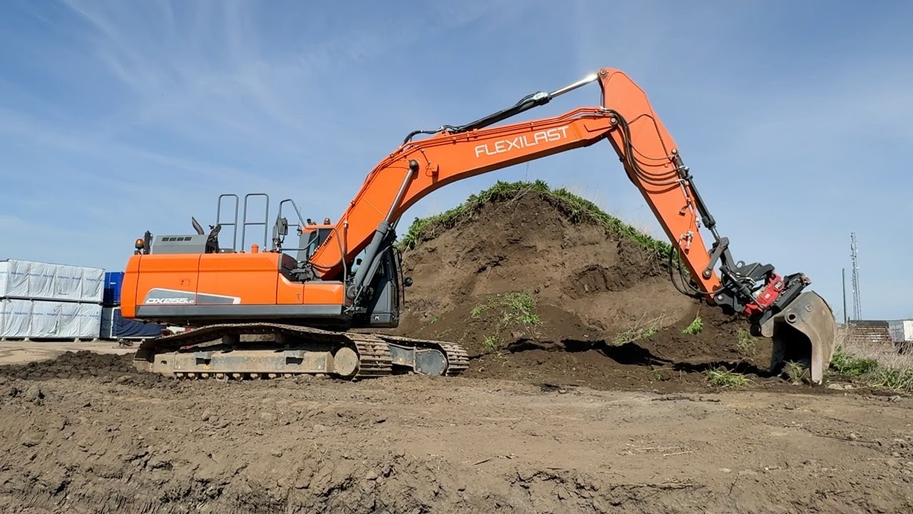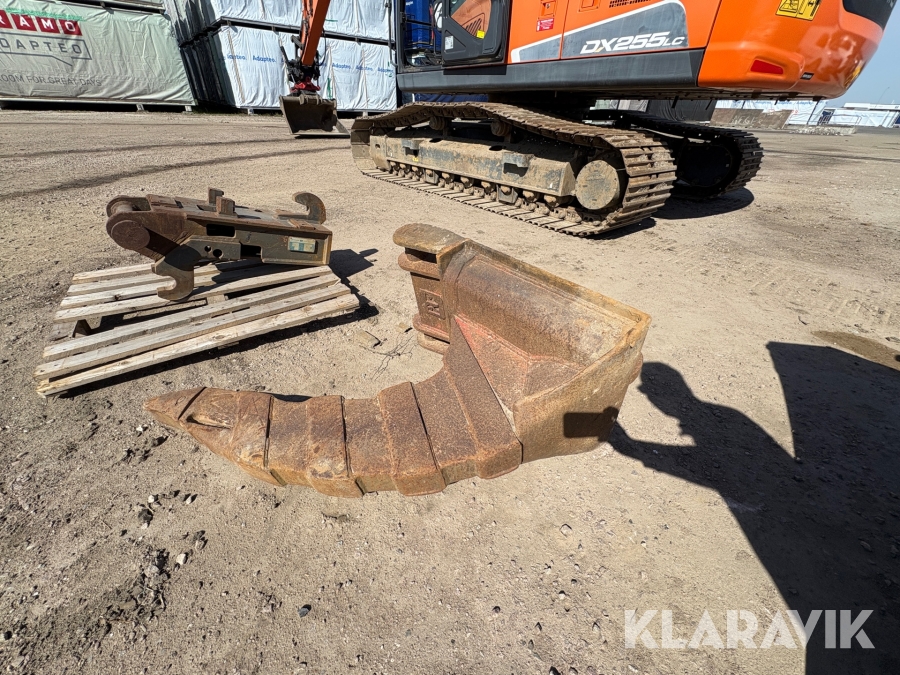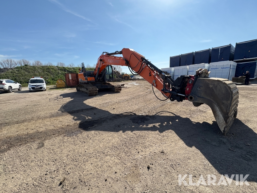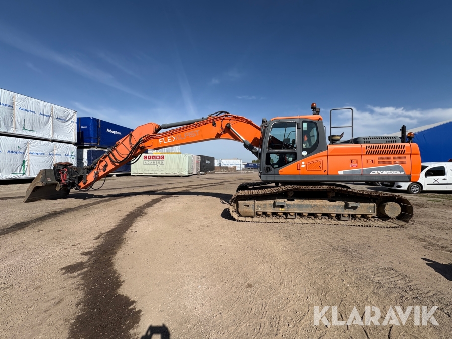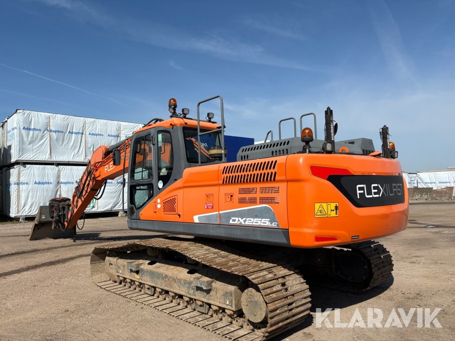 Grävmaskin Doosan DX255LC-5 skopar samt tank
