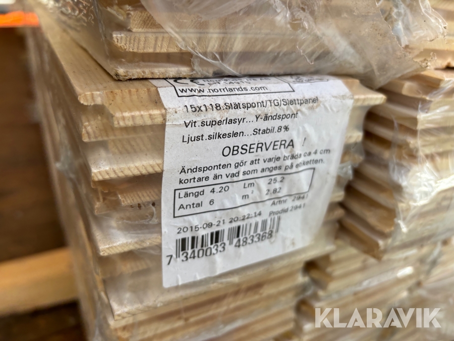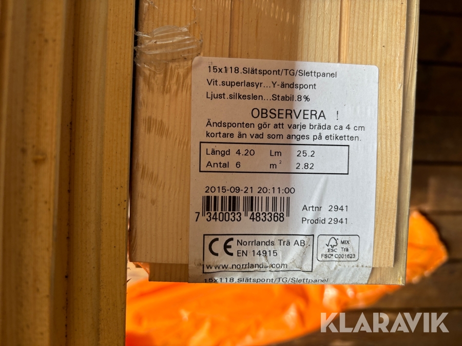 Slätspont Norrlands trä 15x118 - ca 110 kvm