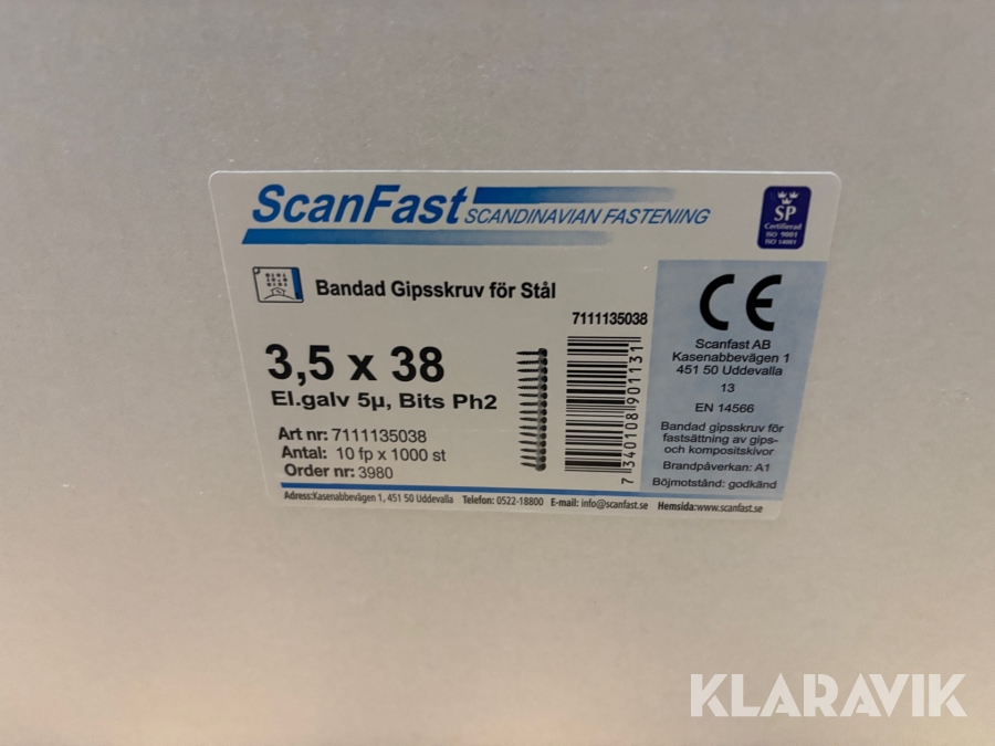 Bandad gipsskruv för stålregel Scanfast 3,5x38 10 x 1000 st
