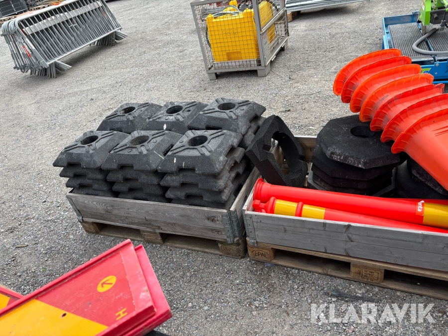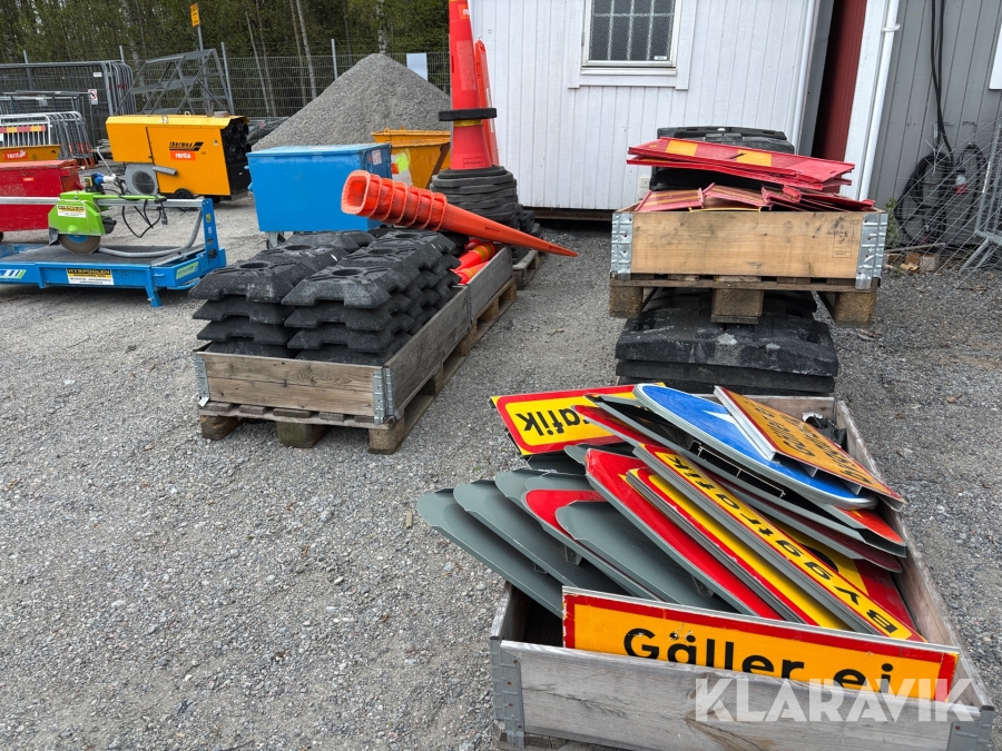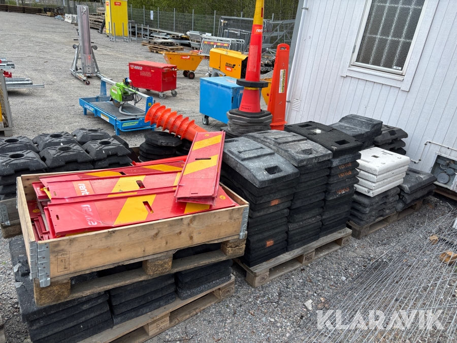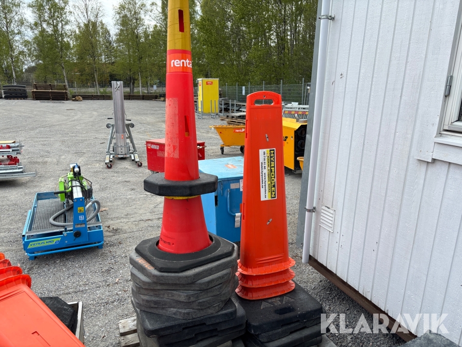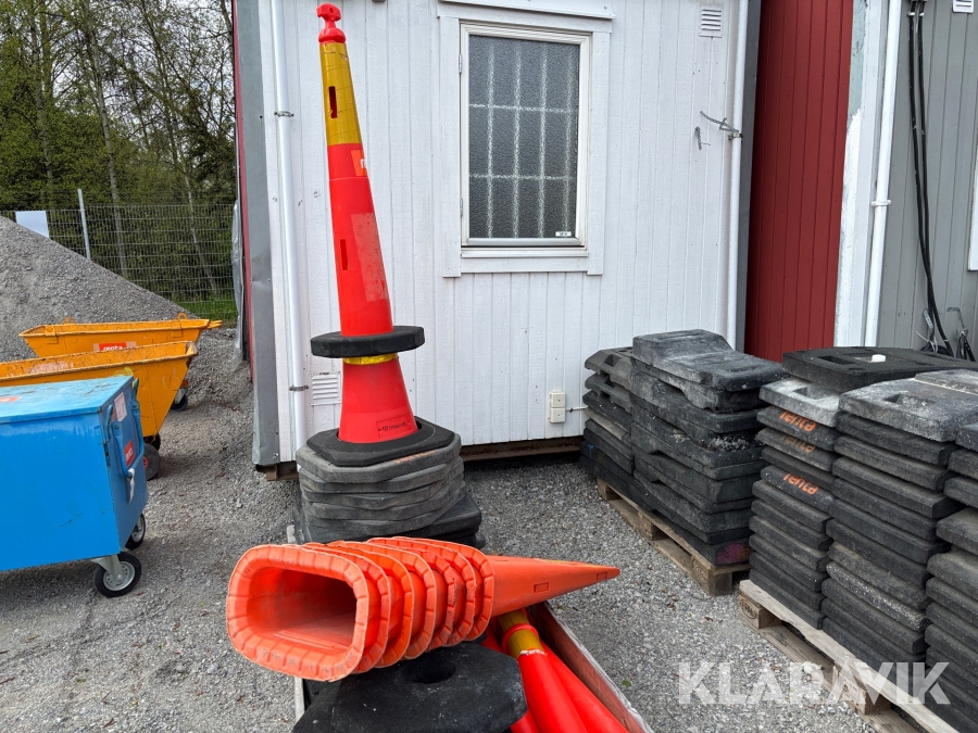 Olika mått på koner, fötter avspärrningar, skyltar