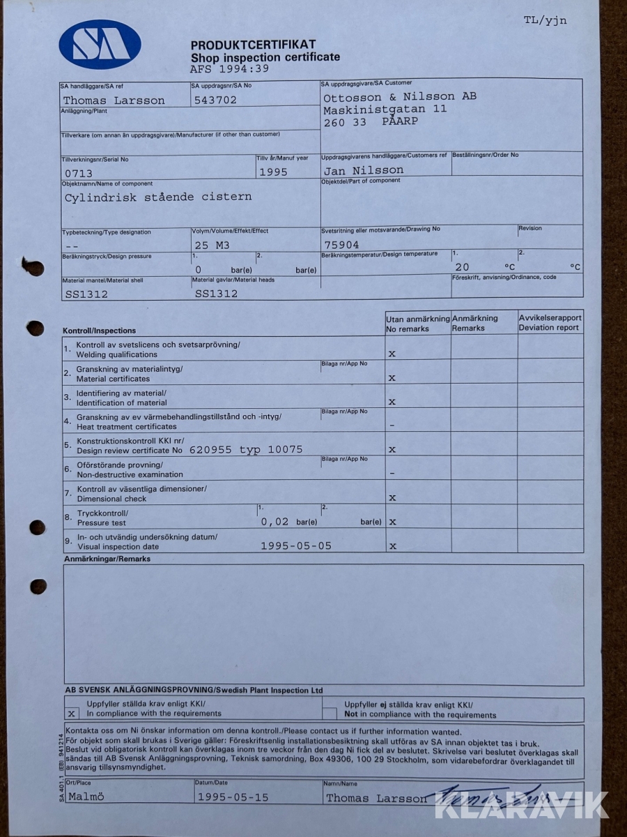 Du som köpare är skyldig att kontrollera objektet vid hämtning. Skiljer sig något avsevärt jämfört med informationen på klaravik.se? Kontakta då Klaravik innan du tar objektet från platsen. Läs fullständiga köpvillkor.