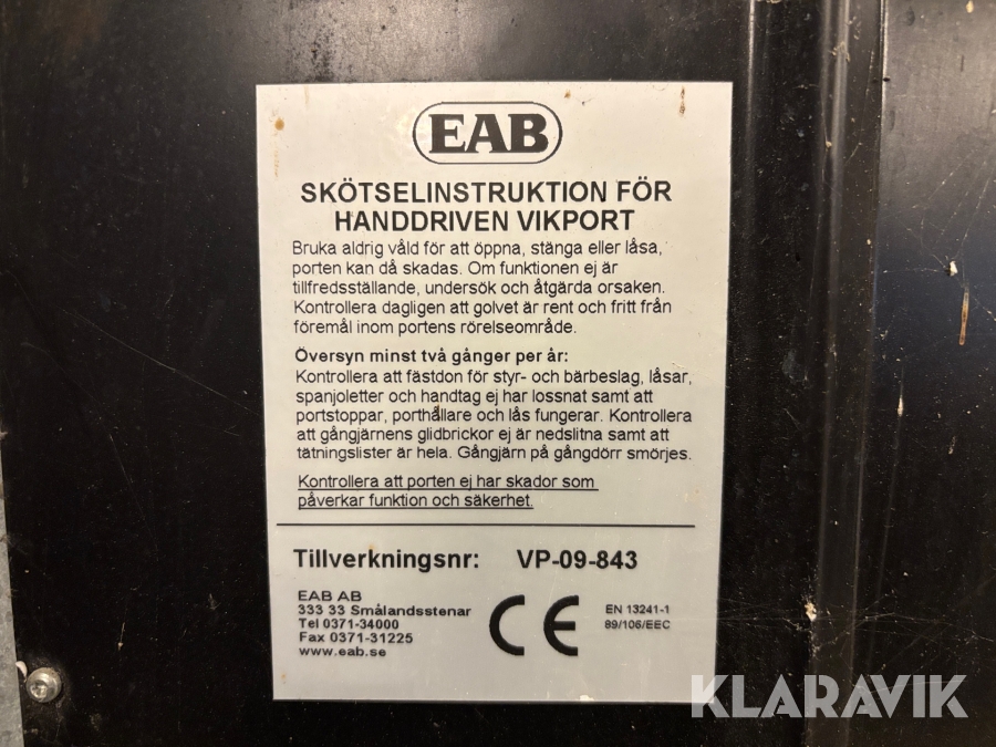 Boka frakt? Det finns ingen specifik information om frakt för just det här objektet, men om du skickar oss en förfrågan via vårt fraktformulär, så undersöker vi möjligheten. Paket, EU-pall eller större maskin? Klaravik har fraktavtal med Schenker och i de fall vi kan hjälpa till med frakt gäller det objekt som ryms i paket eller inom en EU-pall (upp till 120*80 cm och 990 kg). Det går att beställa frakt inom Sverige, dock inte till utlandet. Vid frakt på större maskiner rekommenderar vi gärna transportföretag som du kan kontakta.
