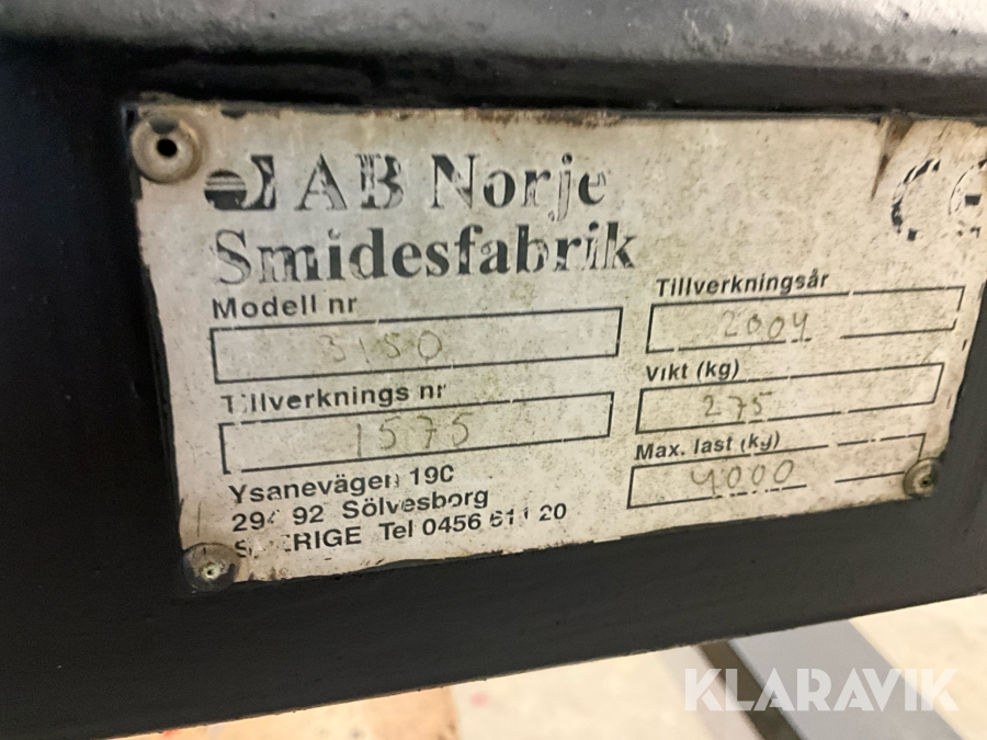 Boka frakt? Det finns ingen specifik information om frakt för just det här objektet, men om du skickar oss en förfrågan via vårt fraktformulär, så undersöker vi möjligheten. Paket, EU-pall eller större maskin? Klaravik har fraktavtal med Schenker och i de fall vi kan hjälpa till med frakt gäller det objekt som ryms i paket eller inom en EU-pall (upp till 120*80 cm och 990 kg). Det går att beställa frakt inom Sverige, dock inte till utlandet. Vid frakt på större maskiner rekommenderar vi gärna transportföretag som du kan kontakta.