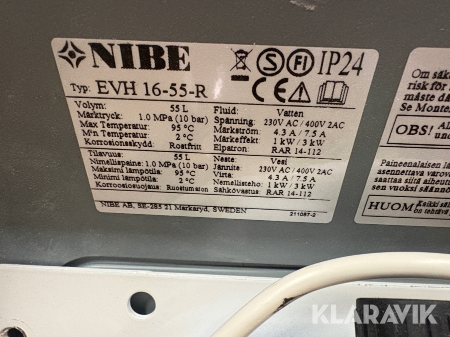 Varmvattenberedare NIBE EVH 16-55-R