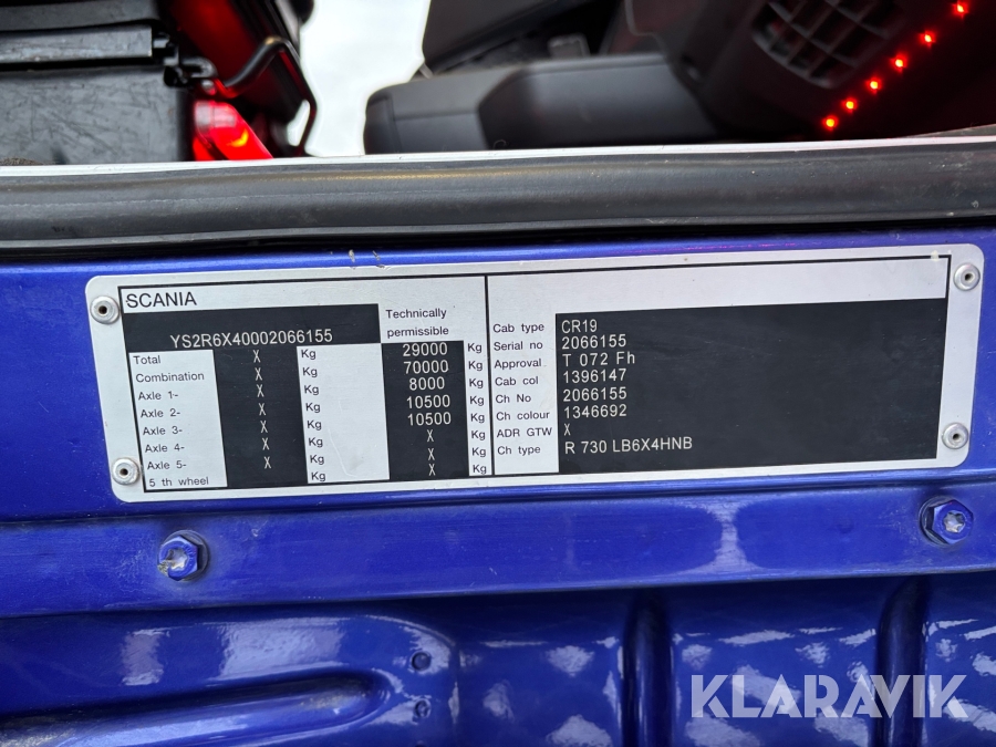 Lastbil Scania R730LB6X4HNB med lastväxlare & vändskiva och laxofäste