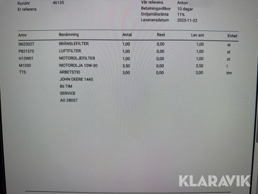 Du som köpare är skyldig att kontrollera objektet vid hämtning. Skiljer sig något avsevärt jämfört med informationen på klaravik.se? Kontakta då Klaravik innan du tar objektet från platsen. Läs fullständiga köpvillkor.