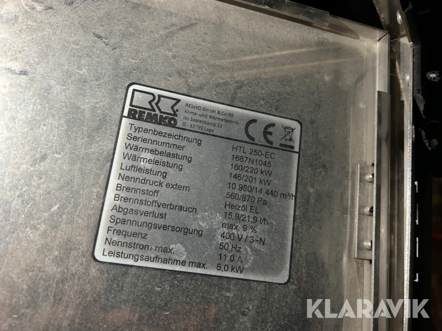 Värmepanna Remko HTL 250-EC diesel