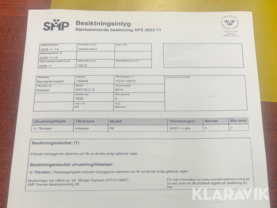 Du som köpare är skyldig att kontrollera objektet vid hämtning. Skiljer sig något avsevärt jämfört med informationen på klaravik.se? Kontakta då Klaravik innan du tar objektet från platsen. Läs fullständiga köpvillkor.