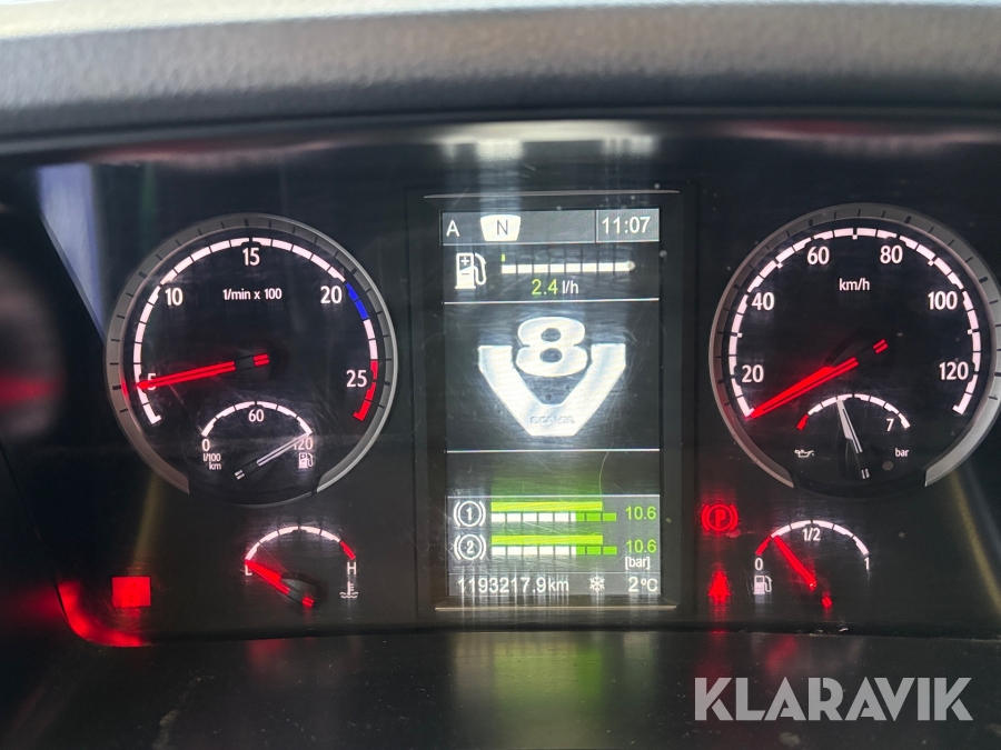 Lastbil Scania R730LB6X4HNB med lastväxlare & vändskiva och laxofäste