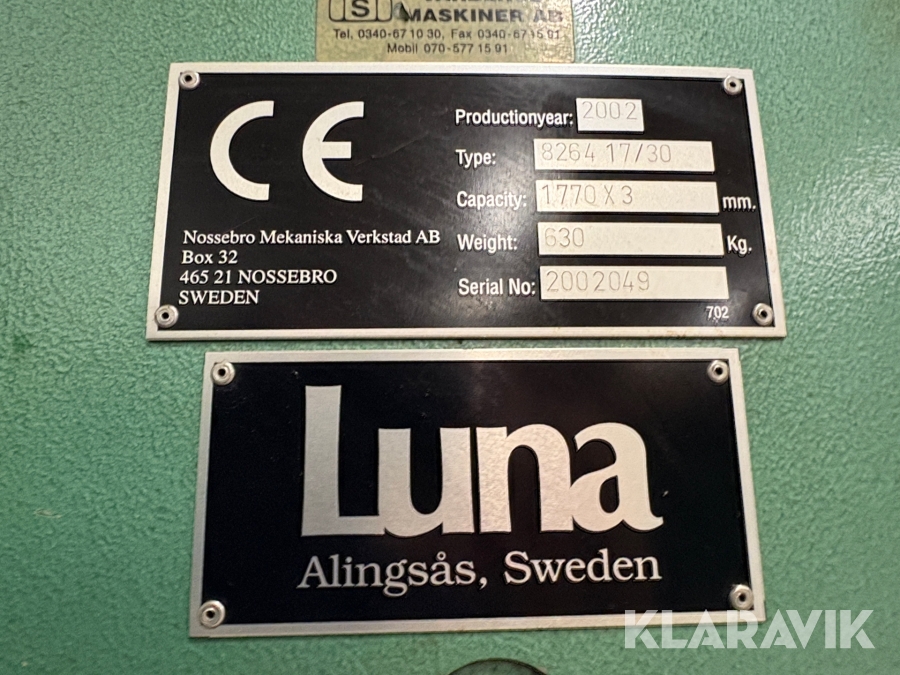 Boka frakt? Det finns ingen specifik information om frakt för just det här objektet, men om du skickar oss en förfrågan via vårt fraktformulär, så undersöker vi möjligheten. Paket, EU-pall eller större maskin? Klaravik har fraktavtal med Schenker och i de fall vi kan hjälpa till med frakt gäller det objekt som ryms i paket eller inom en EU-pall (upp till 120*80 cm och 990 kg). Det går att beställa frakt inom Sverige, dock inte till utlandet. Vid frakt på större maskiner rekommenderar vi gärna transportföretag som du kan kontakta.
