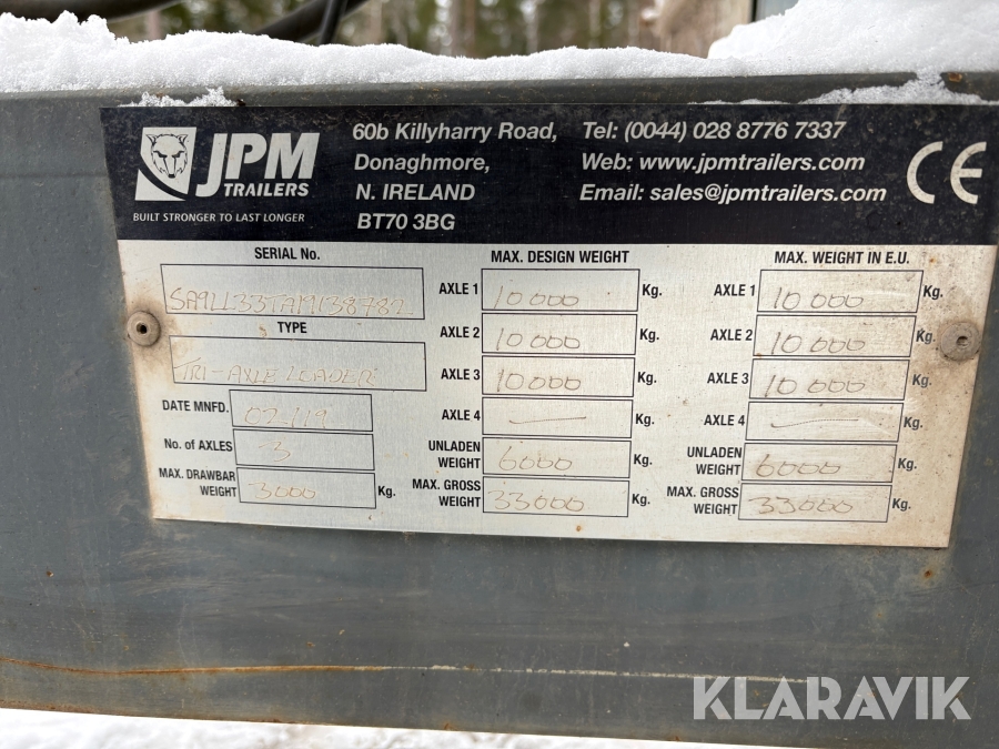 Maskinsläp JPM Trailer TRI-AXLE LOADER